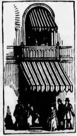 In 1852, he put up the first Italian awnings in Boston, sold to commission merchant James W. Page, who was a trustee of the Thomas–Webster Estate, and friend of Secretary of State Daniel Webster.[4][11] Yale became the leading Boston merchant in sail, awning and tent making in New England.[5][12] He was also a pioneer in the development of the city of Malden, Massachusetts from a small town to a thriving city.[2] He had as customer James Bruce, 8th Earl of Elgin, Governor General of Canada, later Viceroy of India under Queen Victoria, and was in charge of erecting the largest tent in Quebec at the time for the Governor's event.[12][5] His offices were on South Market Street, next to Quincy Market, later at the Fulton-Commercial Streets District.[13]