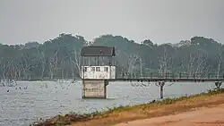 Water is abundant after the northeast monsoon, but during the dry season surface water becomes an important factor. The bodies of surface water appear in the forms of streams, tanks, waterholes, rock pools, and lagoons. Waterholes occur in low lying places while rock pools of varying size are capable of containing water year-round, and are hence an important source of water for elephants. For many water birds and water buffaloes natural waterholes are ideal habitats. Such reservoirs are largely concentrated to the Block I followed by Block II. Several tanks are there including, Maha Seelawa, Buthawa, Uraniya, and Pilinnawa tanks.[2] Many rivers and streams flow in a southeasterly direction, originating in the highlands of adjacent Uva and central hills. Kumbukkan Oya in the east and Menik River and its tributaries in the west flow across the park, and provide an important water source in the dry season to wild animals of the park. Normally the streams of the park are dry during the drought season. These rivers and streams exhibit a degree of runoff fluctuations between wet and dry seasons. Kumbukkan Oya discharges seven times as much water in the rainy season than in the dry season. A number of lagoons are situated along the coast line of the park.[3] There are several routes to get to Yala from Colombo, while the route via Ratnapura and Tissamaharama is the shortest with 270 kilometres (170 mi).[2]