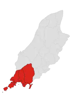 It is located in the south of the island (part of the traditional South Side division) and consists of the three historic parishes of Arbory, Malew and (Kirk Christ) Rushen.
