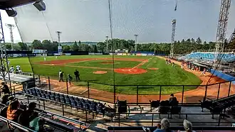 The amateur Prospect League, a collegiate summer baseball league, took up residence in the ballpark in 2015; that team was also known as the Jamestown Jammers.[3] The Jammers were replaced by a team in the Perfect Game Collegiate Baseball League the next year, which played another three seasons before the team's owners abruptly shut the team down and left town in October 2018.[4] A replacement team in the PGCBL, originally intended to keep the Jammers name and history, abruptly decided to rename the team the Jamestown Tarp Skunks (after an inside joke in the Jammers organization) prior to the start of the 2020 season.[5]