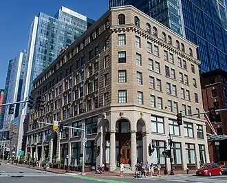 The Russia Wharf Buildings are a cluster of three stylistically similar commercial buildings at 518–540 Atlantic Avenue, 270 Congress Street and 276–290 Congress Street in Boston, Massachusetts. They are built on the original site of Russia Wharf, near where the Boston Tea Party took place in 1773. The wharf was the center of Boston's trade with Russia in the late 18th and early 19th centuries. The wharf's buildings were destroyed in the Great Boston Fire of 1872, and the land area was extended by building over the wharf and filling the spaces surrounding it. The three Renaissance Revival buildings were designed by Peabody and Stearns and was built in 1897.[2]