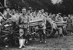 In 1914, the entire army had just 679 motorized vehicles, and most transport was by cart. The 2nd Army, which was to play a decisive role in the offensive in the province of East Prussia, had only 25 field telephones and a telegraph that often broke down, forcing it to send couriers to collect telegrams from the Warsaw post office. The Russian general staff, like that of the other belligerents, had counted on a short war: the ammunition reserve, 7 million shells at the start of the conflict, soon proved insufficient, while the Ministry had not drawn up a war production plan. From the start of 1915, recruits had to train without rifles and, when they went to the front, had to wait to collect weapons from the men they had killed. No one envisaged that the war would last beyond autumn, and there were not even sufficient stocks of winter clothing for the Battle of the Carpathians. Soldiers lacked shoes and harnesses because almost all the tannin for leather was imported from Germany. Equipment imported from the Allies and the United States arrived only slowly; it was very heterogeneous and, by the end of the war, the infantry was using 10 different calibers.[35] Most generals misunderstood the logic of Attrition warfare and neglected to dig trenches, or were content with a single superficial line. Aleksei Brusilov, head of the 8th Army, was one of the few commanders to prescribe a triple line of defense but found that his subordinates neglected his instructions.[36]