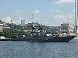 Admiral Tributs (Адмирал Трибуц) is a Project 1155 Large Anti-Submarine Ship (Большой Противолодочный Корабль, BPK) of the Russian Navy. Known in the west as an Udaloy-class destroyer, the ship is named after admiral Vladimir Filippovich Tributs. Launched in 1983, Admiral Tributs serves in the Russian Pacific Fleet, and has taken part in operations alongside the naval forces of other nations like China, India and Japan, and as part of a peacekeeping force in the Middle East between 1992 and 1993.