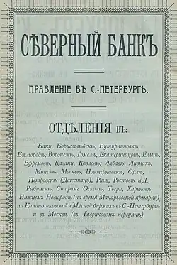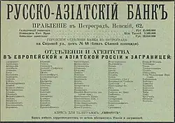- ^ a b Весь Петербург на 1916 год. ("All Petersburg in 1916: Address and Reference Book of St. Petersburg"), A.S. Suvorin, 1916 File:Реклама Русско-Азиатского банка, 1916.jpg