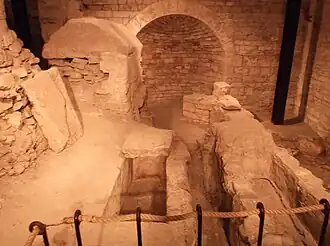 The underground heritage of the Ruvo Cathedral remained hidden for centuries until 1925, when some single-lancet windows emerged during the renovation works. However, in 1935, with the demolition of the chapel of the Blessed Sacrament, it was necessary to lower the floor level of the transept and aisles. However, the new pavement turned out to be continuously humid and wet, so the investigations conducted between 1974 and 1975 led to the discovery of the rich subsoil. It can therefore be assumed that the Cathedral was built on the rubble of a place that has always been frequented over the centuries by Peucetians, Romans and the medieval population. In the hypogeum, in fact, tombs dating back to these civilizations and burials of affiliated to the local brotherhoods were found. Some tombs have survived from the Peucetian age with a scarce funeral equipment but which may suggest an area used as a necropolis and inhabited due to the presence of a furnace. On the other hand, the two mosaic floors found in Roman times date back to the existence of a domus built in the 2nd century and enlarged in the 3rd. The two tombs rich in jewels come from the Middle Ages, moreover some pillars of an ancient building or church on which the Cathedral itself rests date back to the same period.