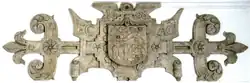 In about 1620 a plaster escutcheon was affixed inside the house showing the de Via arms of the Davie family impaled with the arms of Northcote,[7] the arms of the family of his first wife Katherine Northcote (d.1620).[8]