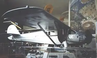 As of 2001, only four complete Broughams were preserved,[9] one at the San Diego Air & Space Museum,[10] and three others which had been modified to look like the Spirit of St. Louis for the 1957 movie starring James Stewart as Charles Lindbergh. One of the movie Ryans is at the Cradle of Aviation Museum.[11] The second movie Ryan is at The Henry Ford museum. The third movie Ryan was hanging in the Terminal 1 at Lambert Field in St. Louis, Missouri, when it was removed in 1998