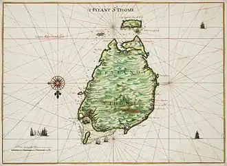 The islands of São Tomé and Príncipe were uninhabited when the Portuguese arrived sometime around 1470.[11] The first Europeans to put ashore were João de Santarém and Pêro Escobar. Portuguese navigators explored the islands and decided that they would be good locations for bases to trade with the mainland.
