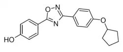 SCHEMBL19952957 is an oxadiazole based antibiotic, originally developed in 2014 as a potential treatment for infections with methicillin-resistant Staphylococcus aureus (MRSA) and other antibiotic-resistant bacteria. Subsequently, it has been found to be useful against Clostridioides difficile as it not only kills active bacteria but also inhibits the germination of the dormant spores which can otherwise often lead to persistent infections that repeatedly recur upon cessation of antibiotic treatment. While it is still only being researched in animals at this stage, this dual action is a significant advance over existing antibiotics, and it is likely that drugs from this class may be developed as new medications for the treatment of antibiotic-resistant infections in humans.[1][2][3][4]