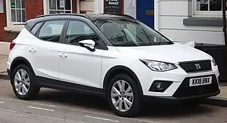 The SEAT Arona is a subcompact crossover SUV (B-segment) manufactured by SEAT since 2017, as the smallest crossover SUV offered by the Spanish brand.[3] As of 2019, it slots in below the Ateca compact model and Tarraco seven-seater.[4]