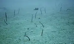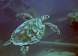 Corals[6] and tube sponges[7] have colonised the wreck, which attracts lobsters,[7] hawksbill sea turtles and many species of fish, including moray eels[7] and blue tang.[6] In 2010 a large Atlantic goliath grouper was reported living in the forward section.[6]