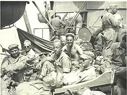 Liberty ships were United States Shipping Board cargo ships, a merchant ship, fitted with guns for defensive purposes manned by United States Navy Armed Guard.[8] In one notable incident they were used for support from 22 to 30 January 1944 when the Lawton B. Evans was involved in the Battle of Anzio in Italy. First class seaman Calvin Stoddard O'Rourke received commendations for his performance on 24 June 1944 when this ship was under repeated bombardment from hostile shore batteries and aircraft throughout an eight-day period. Despite the prolonged danger of shrapnel, machine-gun fire and bombs, the gun crew fought back, setting up a deadly barrage of shellfire. They shot down five German planes and contributed to the success of the landing operations.[9]