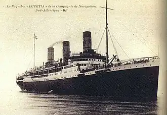 SS Lutetia was a steam ocean liner of the Compagnie de Navigation Sud-Atlantique. She was completed in 1913.[1] Lutetia was the Roman city on the site of what is now Paris.