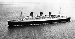 Normandie had a successful year but Queen Mary, Cunard White Star Line's superliner, entered service in May 1936. At 80,774 gross registered tons, she was larger than Normandie's 79,280 gross registered tons, and captured the title of the world's largest passenger ship.[43] In response, CGT increased Normandie's size, mainly through the addition of an enclosed tourist lounge on the aft boat deck. Following these and other alterations, she measured 83,423 GRT.[43] When the Normandie reentered service, she exceeded Queen Mary by 2,000 tons, reclaiming the title of world's largest ship.[43] Normandie retained the title until Cunard White Star Line's RMS Queen Elizabeth at 83,673 gross registered tons formally entered service in 1946.[44]