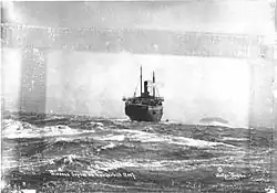 Four hours after leaving Skagway, while proceeding south down Lynn Canal, Sophia encountered heavy blinding snow driven by a strong and rising northwest wind.[16] Captain Locke navigated the canal at full speed, possibly in an attempt to make up time. Due to the prevailing snowy conditions, the crew was required to use dead reckoning by blowing the ship's whistle and making calculations as to their location within the canal, based on the time it took for the echo of the whistle to return. The ship was at least one nautical mile (1.9 km; 1.2 mi) off course.[17]