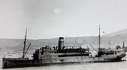 Re-fitted in Alexandria in the spring of 1918, and after being held up by a serious fire that broke out while she was in harbour, she was finally able to leave for Malta early in June. During her voyage to Malta, the Imperial German Navy submarine SM UB-105 torpedoed and sank her in the Mediterranean Sea 240 nautical miles (440 km) east-southeast of Malta[3] with the loss of three of her crew members.