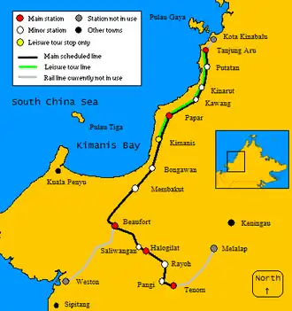 24. ^ Ralon, Larry (28 October 2018). "Rail link to Kudat in 3 years". Daily Express. Archived from the original on 30 October 2018. Retrieved 30 October 2018.
