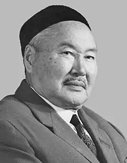 Sabit Mukanov (Kazakh: Сәбит Мұқанұлы Мұқанов, Sábıt Muqanuly Muqanov, Russian: Сабит Муканович Муканов, transliterated Sabit Mukanovich Mukanov; 26 April 1900 – 18 April 1973) was a Kazakh and Soviet poet, writer, publicist, scientist Academician of the Kazakh Academy of Sciences.[1] Sabit Mukanov played also a major role in the political and public life of Kazakhstan.