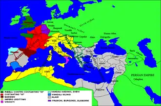 - ^ a b Peter Heather, The Fall of the Roman Empire: A New History of Rome and the Barbarians, (Oxford University Press, 2006), p. 227.