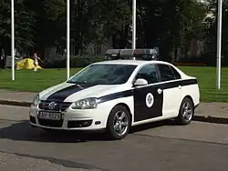 The Saeima and State President Security Service (Latvian: Saeimas un Valsts prezidenta drošības dienests, DD) was a separate unit of the National Armed Forces of Latvia. It provided security to the Parliament and State President, guarded objects, institutions and persons of national importance. Beginning with January 1, 2009, the Security Service was merged into the Latvian Military Police which now carries out the duties of the Security Service [1].
