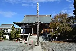 The Sagami Kokubun-ji (相模国分寺) is a Buddhist temple located n the city of Ebina, Kanagawa, Japan. It belongs to the Kōyasan Shingon-shū sect, and its honzon is a statue of Yakushi Nyōrai. It is the provincial temple ("kokubunji") of former Sagami Province. The grounds of the temple are a National Historic Site.[1] and its Kamakura period Bonshō is an Important Cultural Property.[2] The temple was destroyed and rebuilt several times over its long history, and much of its documentary history has been lost.
