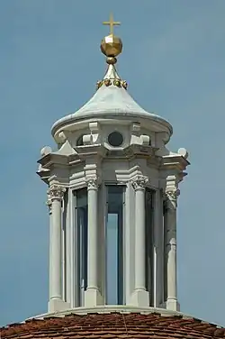 The lantern holding up the orb helps to accentuate the height and size of the chapel, which is fairly small. The lantern is slightly less than seven meters tall and "...is equal to the height of the dome it surmounts".[4] The lantern metaphorically expresses the themes of death and resurrection; it is where the soul could escape and go from "...death to the afterlife".[4]