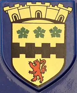 The fork-tailed lion comes from the seal of Amaury de Montfort, shown on historical charts dating back to 1226 and leased to the Monks of Saint-Nom.