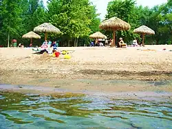 The town is home to a popular beach which can accommodate as many as 10,000 people. Located on Lac Saint-François, nautical sports are among the region's most popular activities and the town also has a golf course.[10]
