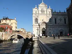 The painting of Saint Mark Preaching in Alexandria was commissioned by the Scuola Grande di San Marco (the Great Confraternity of Saint Mark) in Venice for their gathering house in the Campo San Giovanni e Polo, perhaps the biggest important square in Venice. The Scuola Grande di San Marco was reconstructed after a massive fire took a hit on the old structure on 31 March 1485 toward the end of the fifteenth century. The room that contained the most prestigious paintings and focus was the meeting space where it demonstrated their patron saint's narrating life. The Scuola Grande di San Marco looked to the most valuable painter Gentile Bellini to create this painting.[3]