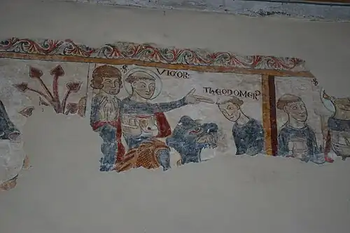 Vigor was venerated from an early date in Bayeux, where he had been bishop. His cult as a saint is attested in 834 by mention of a relic at Le Mans.[4] Around 987 Vigor's relics came to the Abbey of Saint-Riquier in Ponthieu. Saint-Ouen Abbey, Rouen held a copy of the Vita Vigoris; John Howe dates the "vita"s composition to the beginning of the eleventh century.[5] In 1032 Robert the Magnificent, Duke of Normandy, founded an abbey dedicated to Saint Vigor on the site of an older monastery destroyed by the Normans during their invasion.[6]