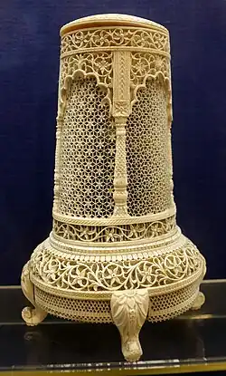 The Museum contains important examples of ivory carvings in different forms, such as furniture, mats, lamps, handles of daggers, chess and chausars. The chessman and chausar are interesting elements, the pawns being depicted as soldiers, while the king and queen are riding on elephants. These painted pieces belong to North India.[10]