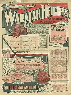- ^ Arthur Blackwood Ltd; Jensen & Hein (1900), Waratah Heights Estate: Salisbury, Brisbane, A. McLaren, archived from the original on 5 October 2020, retrieved 5 October 2020