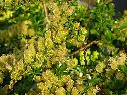 Salix apoda, the Caucasian willow (an appellation it shares with other members of its genus), is a species of flowering plant in the family Salicaceae, native to the Caucasus and northern Turkey.[1] A prostrate shrub, it is occasionally cultivated as an ornamental ground cover in rock gardens, particularly the males, since they produce large, silvery catkins that then erupt in yellow stamens.[2][3][4]