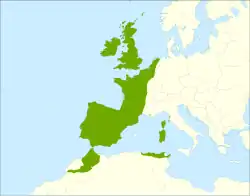 The grey willow distribution is mostly Atlantic from Western Europe and North Africa to some Mediterranean islands. Naturally growing in Britain, France, Belgium, Netherlands, Spain, Portugal, Morocco, Algeria and Tunisia, it is very common in the Iberian Peninsula, and is also found in Corsica.