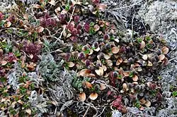 Salix phlebophylla, the skeletonleaf willow or skeleton-leaf willow, is a species of flowering plant in the family Salicaceae, with an amphi-Beringian distribution.[1][2] A prostrate shrub reaching at most 1.5 in (4 cm), its tiny leaves persist on the plant until only the withered brown veins remain.[2]