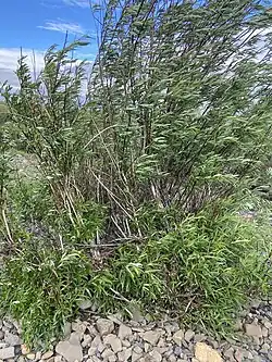 Salix schwerinii, the narrow-leaf willow,[2] is a species of willow native to northeastern Asia (from Kolyma to northeastern China). It is a shrub or a tree 10 to 15 m (33 to 49 ft) m high with long and exceptionally narrow leaves, similar and closely related to Salix viminalis.