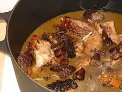 A salmis [sal.mi] is a preparation from classical French cooking. When a roast or sautéed piece of meat is sliced and reheated in sauce, the result is a salmis.