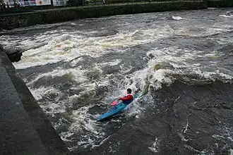 The River Corrib (Irish: Abhainn na Gaillimhe) in the west of Ireland flows from Lough Corrib through Galway to Galway Bay. The river is among the shortest in Europe, with only a length of six kilometres from the lough to the Atlantic. It is popular with local whitewater kayakers as well as several rowing clubs and pleasure craft. The depth of this river reaches up to 94 feet.[1]