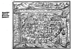 In 1576, having completed his studies and being in search of employment, he was hired as embassy chaplain by Joachim von Sintzendorff, Habsburg ambassador to Istanbul (1578–81).[3] He traveled as a Habsburgian envoy to Constantinople[4] with an Austrian delegation from Vienna on a diplomatic mission of Emperor Rudolf II to Sultan Murad III.[5] He spent several years attached the Habsburg embassy,[6] in the role of Hofprediger (court preacher)[7] successor to Stephan Gerlach.[8] In this travel diary, he vividly describes his personal experiences and also provides an interesting insight into life in the former Ottoman Empire. He deduced that "Serbians, Bulgarians, Rascians, have their origins in the ancient German tribes of Daci",[9] and also wrote about Bulgarian jewelry, curious at the nose rings he saw worn by the women and the "exoticism" he witnessed.[10] He also commented on jugglers, fires, the "clumsy" music of the Turks, their food, customs, and buildings.