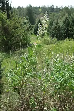 Salvia dominica (Dominica sage, in Arabic ( Maru = مرو or "Khowwekha" = خويخة ), in (Hebrew: מרווה, marva) is a strong-scented perennial shrub found throughout the eastern Mediterranean, especially Jordan[1] Israel,[2] Lebanon and Syria. The branched inflorescence is one of several salvias thought to have inspired the design of the menorah. It grows to about 1 meter in height and width, and blooms in spring or early summer with pale yellow and white flowers in delicate whorls.[3]