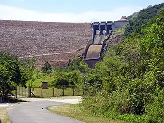 The Samanala Dam (Sinhala: සමනලවැව වේල්ල) is a dam primarily used for hydroelectric power generation in Sri Lanka. Commissioned in 1992, the Samanalawewa Project (Samanala Reservoir Project) is the third-largest hydroelectric scheme in the country, producing 405 GWh of energy annually. It was built with financial support from Japan and the United Kingdom. It is notable for a large leak on its right bank. Power production continues as planned despite the leakage, and the water from the leak now provides two thirds of the water issued by the reservoir for agriculture in downstream areas.