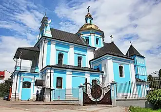 Church of Nativity of the Theotokos in Sambir built of wood in the late 1570s, in the town of Sambir, (in the Polish–Lithuanian Commonwealth), commissioned by the Ruthenians (Polish: rusini), Queen of Poland and Grand Duchess of Lithuania Bona.[4] This decision provoked protests and complaints in a multi-confessional environment of the community of Sambir. However, the "dispute was successfully resolved in favor of the Lord"[4] and a wooden The Church of Nativity of the Theotokos was built, which served until 1738, when it was rebuilt in stone.