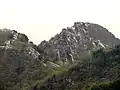 Bukhansan (Korean: 북한산, lit. 'North Han Mountain'), alternatively Pukhan-san[2] or Bukhan Mountain, is a mountain on the northern periphery of Seoul, South Korea. There are three major peaks, Baegundae 836.5 meters (2,744 ft), Insubong 810.5 meters (2,659 ft), Mangyeongdae 787.0 meters (2,582.0 ft).[1] Because of its height and the fact that it borders a considerable portion of the city, Bukhansan is a major landmark visible from most city districts. The name "Bukhansan" means "mountain north of Han River", referring to the fact that it is the northern border of the city.[3] During the Joseon era, the peaks marked the extreme northern boundary of Seoul.