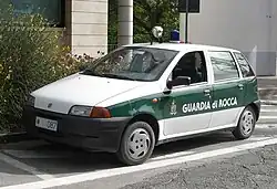 The Guard of the Rock (Italian: Guardia di Rocca) is a front-line military unit in the San Marino armed forces. Its precise origin is difficult to pinpoint due to amalgamations. Its role was last redefined by statute in 1987, and it probably came into being as a military branch in 1754; however, the unit also uses the name "Fortress Guards" which may be traced back to much earlier units of Sammarinese military. The Guard of the Rock are the state border patrol, with responsibility for patrolling borders and defending them.[8] In their role as Fortress Guards they are also responsible for the guarding of the Palazzo Pubblico in San Marino City, which is the seat of national government. In this role, they are the forces most visible to tourists, and known for their colourful ceremony of Changing the Guard. Under the 1987 statute, the Guard of the Rock are all enrolled as 'Criminal Police Officers' (in addition to their military role) and act to assist the police in investigating major crime.