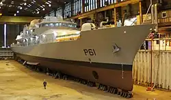 The Samuel Beckett-class offshore patrol vessel is a class of offshore patrol vessels (OPV) ordered by the Irish Naval Service from October 2010. The first vessel is named Samuel Beckett and was commissioned in May 2014.[7] Construction on this first vessel commenced in November 2011,[8][9][10] A further three vessels were named James Joyce, William Butler Yeats and George Bernard Shaw, and delivered in 2015, 2016 and 2018 respectively.[7][11][12]