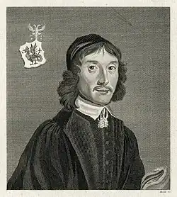 Samuel Drake was born in Pontefract,[1] although some old sources say he was a native of Halifax, Yorkshire.[2] He was baptised in Pontefract on 29 September 1622, the first of the three children of Nathan Drake (1587–1658) of Halifax and Elizabeth Higgins (died 1672).[1] He was educated at Pocklington School. He was admitted to St. John's College, Cambridge, in 1637, and obtained his B.A. degree in 1640–1. In 1643 he was admitted a fellow of that college by royal command, and in the following year proceeded M.A. He was subsequently ejected from his fellowship for refusing to take the Covenant. He afterwards joined the Royalist army, and was a member of the garrison at Pontefract, and present at the Battle of Newark. In 1651 the Parliament ordered him and several other ministers to be tried by the High Court of Justice on suspicion of conspiracy, but the result is unknown. At the Restoration he was presented to the living of Pontefract, and in 1661 he petitioned the King to intercede with the vice-chancellor of Cambridge University that he might proceed to the degree of B.D., as he had not been able to keep his name on the college books, and sent certificates to show that he had served with the army, and that his father's estate had been plundered. In November 1661 Charles II complied with his request, and in a letter of Williamson Drake says the vice-chancellor permitted him to proceed D.D. after "long bickerings". In 1670 he was collated to a prebend of Southwell, which he resigned the following year.[2] He died in 1679,[1] although some old sources give the earlier date of 1673.[2] He left a son, Francis Drake, vicar of Pontefract, who assisted Walker in the compilation of The Sufferings of the Clergy, and whose sons, Samuel and Francis, were separately notable.[3]