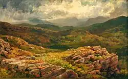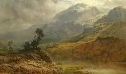 Samuel Henry Baker was born in Birmingham, the son of Thomas Baker who was a manager at Matthew Boulton's Soho Works.[1] He was apprenticed to James Chaplin, a magic lantern-slide painter and trained at the Birmingham School of Design. He also took lessons from the landscape painter, Joseph Paul Pettitt who had been a pupil of Joseph Vincent Barber.[1] It was possibly through Pettit that Baker inherited the distinctive drawing style of the Birmingham School with its clear outlines and bold cross hatching.[2] He exhibited over five hundred paintings at the RBSA from 1848 to 1909 and was elected a member in 1868.[3]