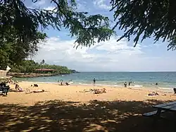 In 2003 the park was renamed to include the original name of the beach, ʻŌhai ʻula.[5] The beach could have been named for the red Sesbania tomentosa trees that originally grew in the area,[6] or the royal poinciana tree Delonix regia.[7]