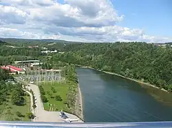 The San arises in the Carpathian Mountains near the village of Sianky, at an elevation of 900 metres (3,000 ft), exactly on the Polish-Ukrainian border[7] (49°00′10″N 22°52′30″E / 49.00278°N 22.87500°E) and on the continental watershed, and forms the border between Poland and Ukraine for approximately its first 50 km (31 mi). Poland's largest artificial lake, Lake Solina, was created by a dam on the San River near Lesko.