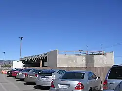 Under the original schedule, preliminary work was to begin in October or November 2010, including construction of temporary shoofly tracks and utility work, and the new structures would be built between spring 2011 and summer 2012.[7][12] The budget was US$147 million, provided as a mixture of county (authorized by Measure A), state, and federal funds.[7] In October 2010, trains began stopping at a temporary station at Georgia Avenue.[13] Trains began using the new elevated tracks on May 26, 2013, and the new station opened on April 1, 2014.[14] HNTB won the "Transportation Project of the Year" award from the San Francisco Section of the American Society of Civil Engineers in 2014 for the San Bruno Grade Separation,[15] although the project also has attracted criticism for failing to resolve a relatively sharp curve and excessive costs with few passenger benefits.[16][17]